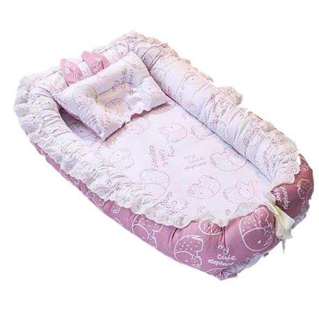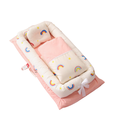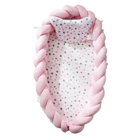Multifunctional Baby Double Braided Bumper Cot Mattress Nest Bed - Pink