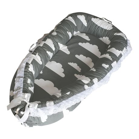 Mamakids Portable Baby Nest and Co-Sleeper - Grey with White Clouds