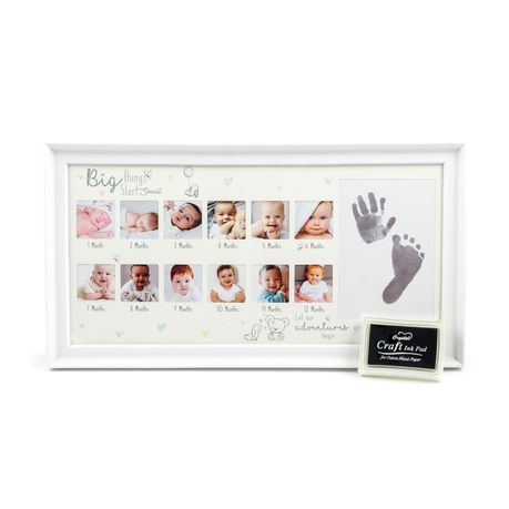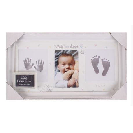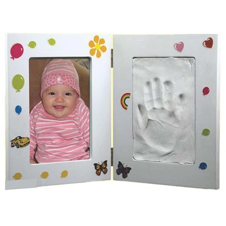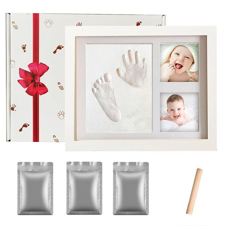 DIY Baby Handprint & Footprint with Wooden Photo Frame and Mould Kit -White