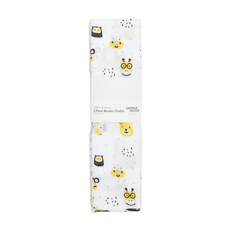 George & Mason Baby - Unisex 2 Pack 100% Cotton Muslins