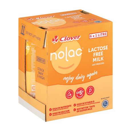 Clover UHT Nolac Lactose-Free Milk - 6 x 1L