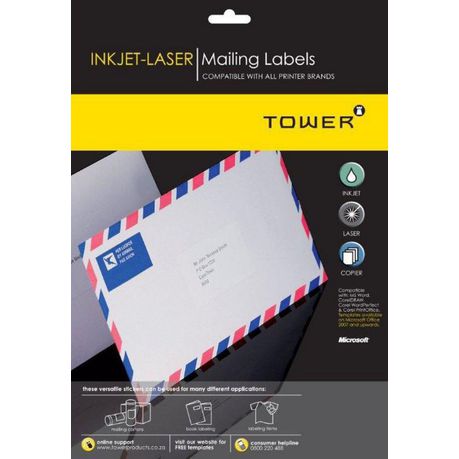 Tower W100 Mailing Inkjet-Laser Labels - Pack of 25 Sheets