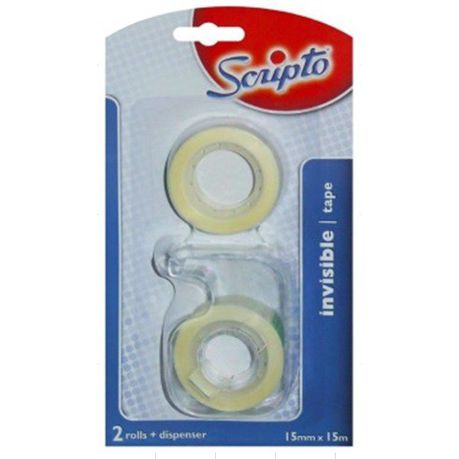 Scripto Invisible Tape - 2 Rolls & Dispenser - 15mm x 15m