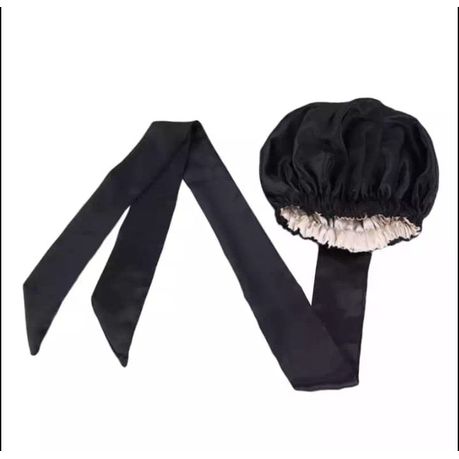 Sleep Bonnet Cap - Wide Band - Extra Large Size Hair Bonnet - Black