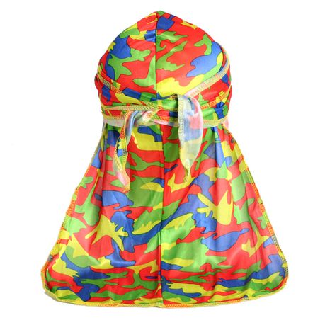 Durag Boss Silky Satin Durag with Extra Length Ties (Camouflage Rainbow)