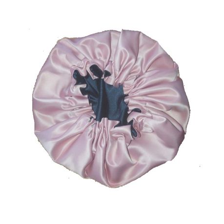 Pink and Navy Wide Comfortable Reversible Duchess Satin Bonnet Sleeping Cap