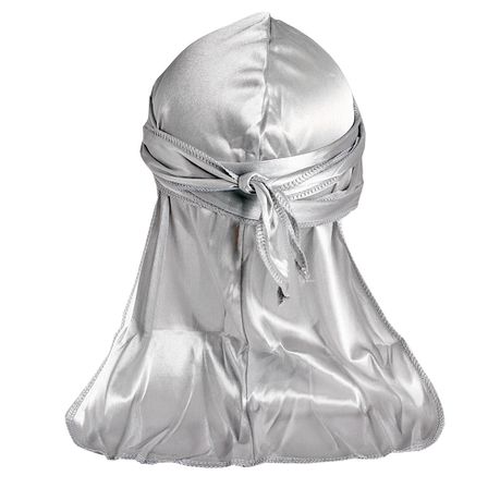 Durag Boss Silky Satin Durag with Extra Length Ties (Silver Grey)