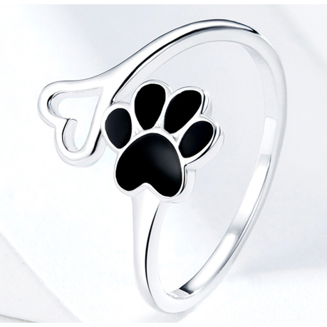 1 x 100% 925 Sterling Silver Platinum Plating Adjustable Paw Print Ring
