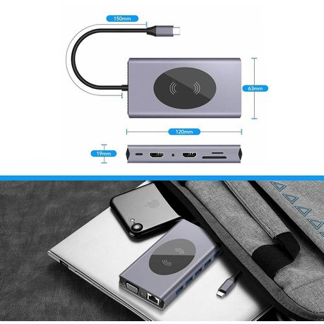 Function: 5 x USB 3.0/USB-C PD/2 x HDMI/TF/SD/Audio/RJ45/VGA/Wireless Charging
