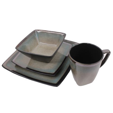 Service for 4 Set Includes Four 11" Dinner Plates Four 9" Dessert Plates Four 5.5" Bowls Four 16oz. Mugs.