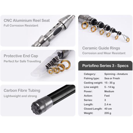 Portofino Series 3 - Telescopic Fishing Rod Carbon Fibre Aluminium