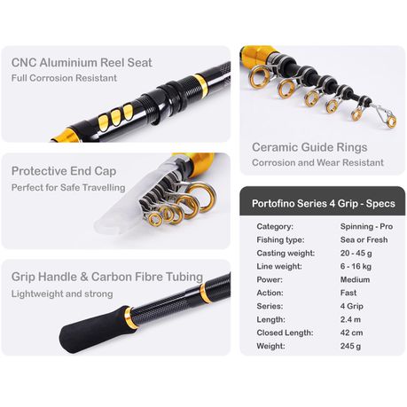 Portofino Series 4 Grip - Telescopic Fishing Rod Carbon Fibre Aluminium