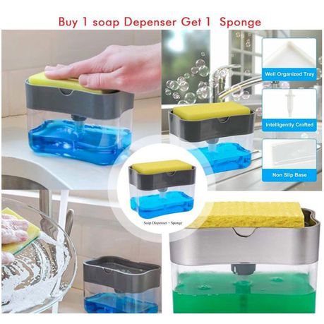 - 2-in-1 Soap Pump Dispenser and Sponge Caddy.