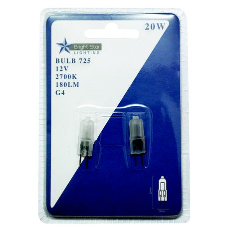 20 Watt G4 Halogen Lamp with Frosted Glass - This Item is 12 Volt and Requires A Transformer or Ballast - Colour Temperature: 2700k - Lumen: 180 - 2 in 1 Blisted Pack - Please Note This Item Will Dim With A Dimmer Module (Sold Separately)