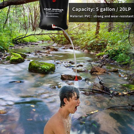Camping shower bag, holds 20 Liters. Hot water 45/55 Deg Celsius. Switchable Shower head For camping, Beach, Outdoor, Travelling, Hiking etc.