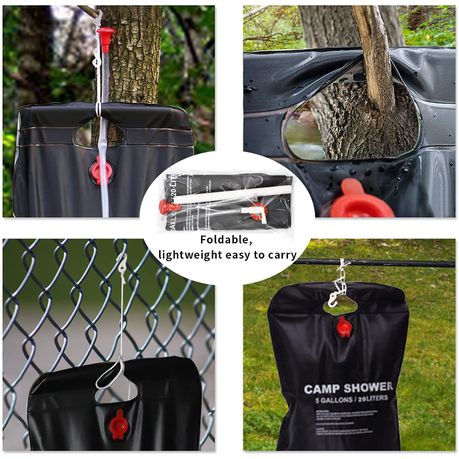 shower designed with removable hose, with On/Off adjustable switch to control water flow from low to high. Our portable shower also comes with a shower head, water tap and a rope to hang the shower bag. Our solar shower will offer you a wonderful shower experience.