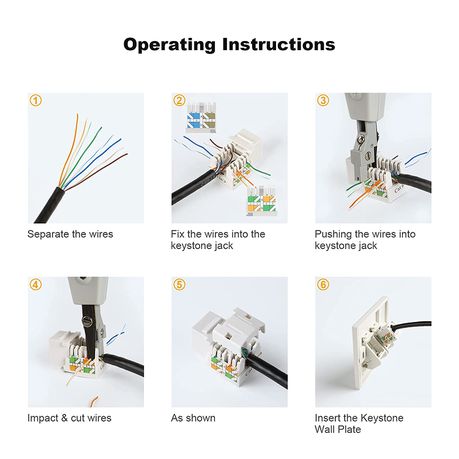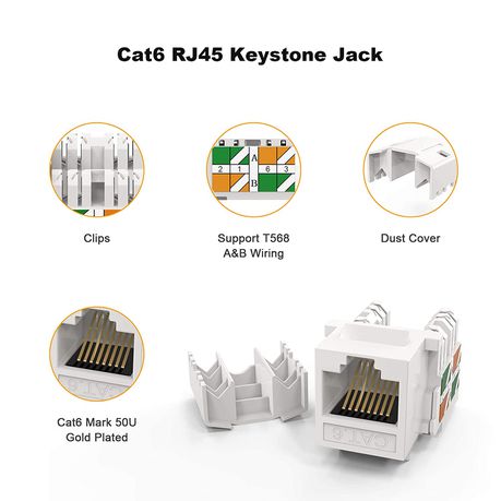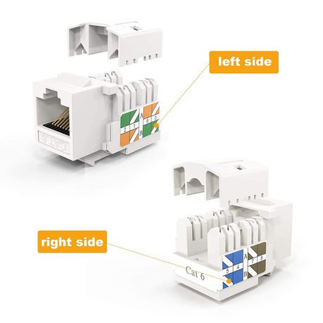 Heavy duty Cat6 RJ45 Keystone modular jack, Can be used with keystone wall plates, patch panels, or surface mount boxes