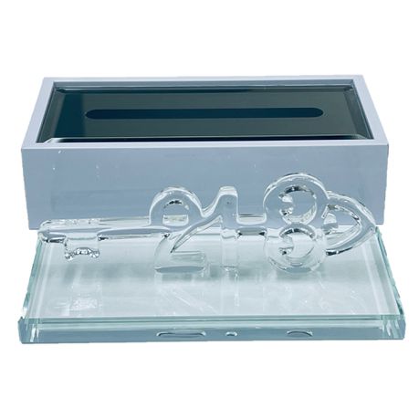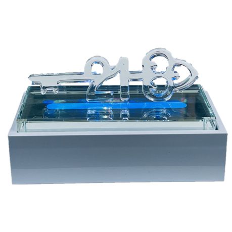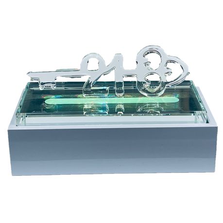 Glass 21st Key on a Glass base plus a Lightbox with Multi Colour Changing Light Feature This two Piece 21st key set is a Brand new designed product to give a little more light to this stunning key; The Light Feature changes the colour of the key to 5 x Various luminous colors.