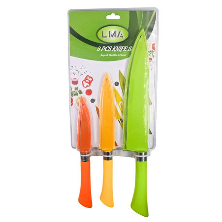 The knives feature a non-stick coated blade that will