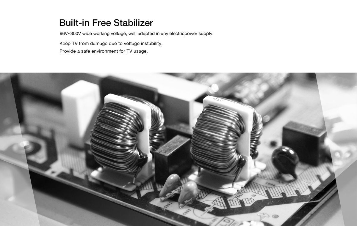 Syinix Analog TV has a built-in Free Stabilizer of 96V~300V wide working voltage, well adapted in any electric power supply. The stabilizer prevents the TV from being damaged in the event of voltage instability or blackouts and also provides a safe environment for you to enjoy your TV.
