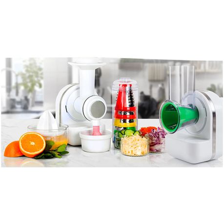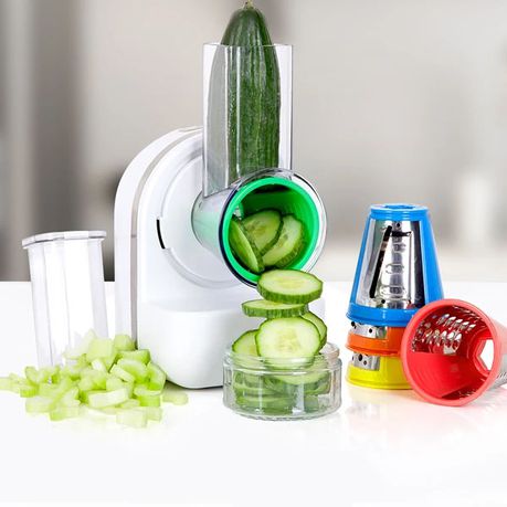 The 4 in 1 multi-kitchen is a flexible product chopper. You can cut any product into neat slices of different sizes, mash, make drinks, sauces, etc. Unlike ordinary graters, the 4 in 1 Multi-Kitchen is completely secure - without touching the cutting surface, you would not hurt your fingers and nails. The 4 in 1 Food Processor, Grater, Juice Squeezer & Ice Cream Maker comes with;