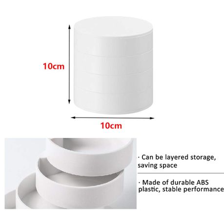 360 degree rotation free and easy to take, layered design, easy to classify and put, put neatly, not easy to damage items, four-layer design, Easy to store when not in use, There is a cover on the top to prevent your treasures against dust and scratches.