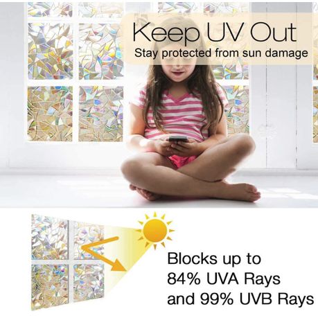 design it will show a colorful visual effect when sunlight hits the film after installation; Please spray a lot of water both on the window surface and window film back during installation for effective attachment