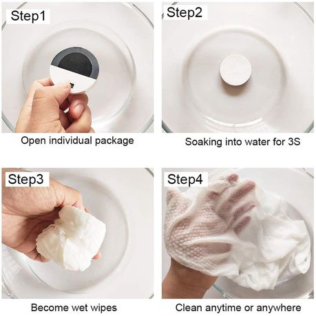 The compressed towel is made from cotton and has good water absorption. Simply soak the compressed towel in water for few seconds, then dry it and use it as a towel. Please note: the compressed towels are designed to be compact and easy to take with them on the trip, so they will not be as thick as the normal home towels.