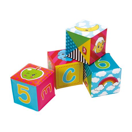 Discover the world through play with ABC! ABC offers age-specific products designed to stimulate the curiosity of babies and young children aged 0-36 months and support development in the first few years of your child’s life. Our fun products encourage learning through play to help your little one achieve early learning objectives, discover shapes and structures and improve coordination. Lots of fun with the soft ABC stacking blocks! The 6 colourful stacking blocks help children to learn basic shapes, colours and numbers in a fun way. The ABC stacking blocks are suitable for children aged 6 months and over.