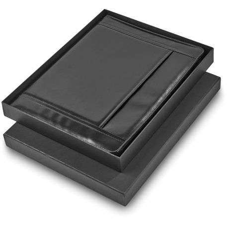Create the ultimate gift with this opulent Franklin Folder which carries a rich look with its deluxe gift box packaging. The soft vegan PU leather design offers a cushioning on the palms, making it no less than a luxury for regular use. The Alex Varga zip folder carries a 100 page lined paper pad for seamless use.
