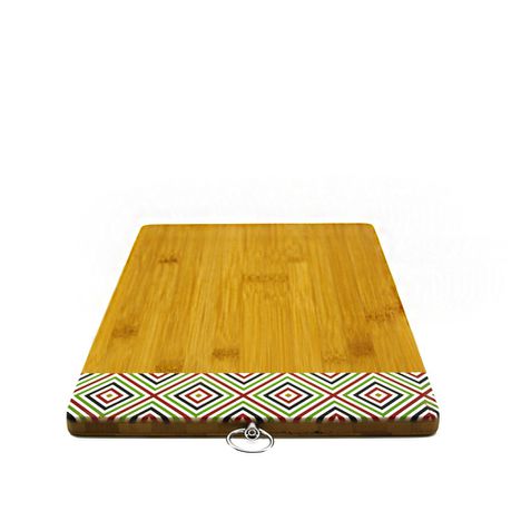 The cutting board also features a colourful striped pattern that is sure to compliment any kitchen decor, whether the kitchen has a modern day style or a more playful style.
