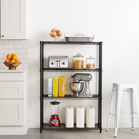 Placed in the kitchen, the shelving unit holds anything from canned goods and bulk items to pots and pans, stand mixers, dishes, and bowls. In the living room, the shelving unit beautifully displays books, magazines, board games, and more, while in an office setting, it can help keep files, documents, and supplies neatly organized. For small dorm rooms, the four-shelf shelving unit makes use of available vertical space for keeping clothes, snacks, text books, and more neatly organized and easily accessible. The shelving unit can also be used to help keep garage clutter under control; it works great for heavy cans of paint, toolboxes, gardening supplies, extension cords, and more. The shelving unit quickly provides added shelf space, wherever it's needed most.