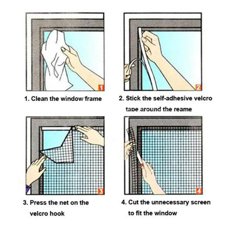 Easy to install plastic screen with thin velcro strip.Easy to install plastic screen with thin velcro strip.Screen size 1.5 x 1.3m and can be cut to size with a pair of scissors to fit just about any window smaller than 1.5 x1.3m.