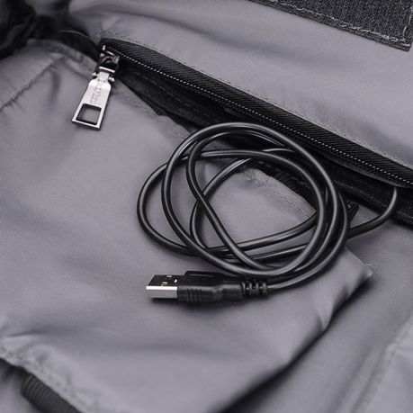 - Connect your mobile power with the USB interface inside the backpack.