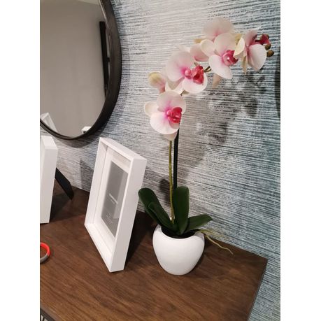 What's in the box 1x Artificial White & Pink Orchid Plant With White Vase 1 Stem
