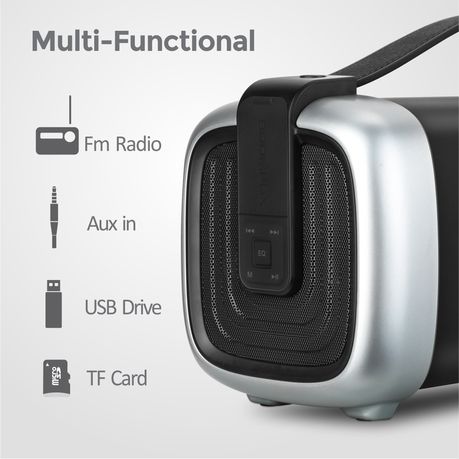 This awesome speaker comes with abudance of options making it a multi-functional wizard, connect your USB stick or TF card to stream you favorite hits directly, 3.5mm aux port connects your pc or non bluetooth enabled devices, stream your favorite FM station and regulate speaker sound effect with equalizer function.