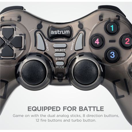 Rock and Roll with dual analog joysticks designed for professional gaming with 8 direction buttons, 12 fire buttons & 2 analog sticks giving continuous direction output and lightning sensitive steering.