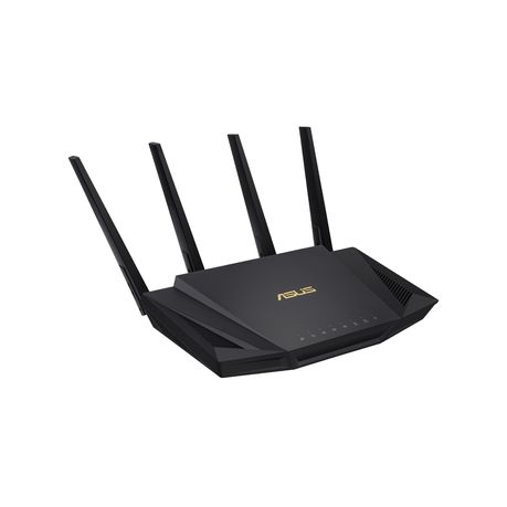 AX3000 Dual Band WiFi 6 (802.11ax) Router supporting MU-MIMO and OFDMA technology, with AiProtection Pro network security powered by Trend Micro, compatible with ASUS AiMesh WiFi system.