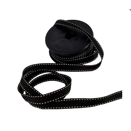 X 1 roll 15mm black petersham ribbon with white side stitch 20m