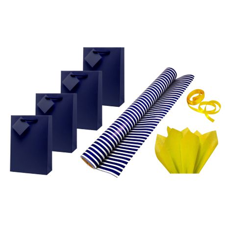 x 1 Navy Blue and White Stripes wrapping paper 10 meter roll