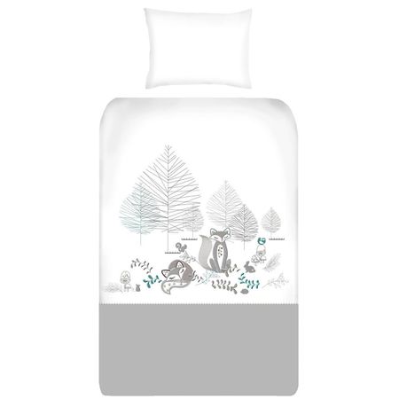 This designer 400 thread count 100% Egyptian cotton Woodlands baby duvet cover set is luxuriously soft and gentle on your baby's delicate skin. This modern design of foxes in the woods is perfect for boys and girls. Bunnies, squirrels and other little woodland creatures feature in this theme.