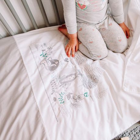 The baby duvet cover set design is made with beautiful satin stitch embroidery and a lunar grey cuff. A piped finish compliments the design and makes a product that will not only enhance the look of your nursery, but will ensure that your baby has the best sleeping environment possible.