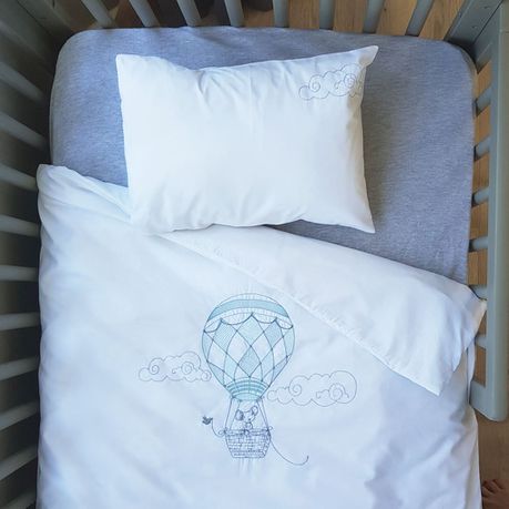 The cot duvet cover set has a beautiful hot air embroidery design is perfect for gender neutral nurseries. This cot set ensures that your baby has a trendy, comfortable and safe sleeping environment.