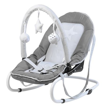 The detachable toy bar features 3 hanging toys to reach, bat and grasp.