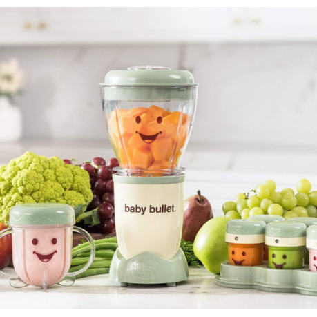 The Baby Bullet Complete Baby Care System is a 20 piece set that helps you make healthy, delicious, all-natural baby food that is perfect for every stage of development. Turn family dinner into baby's dinner, make an entire week worth of healthy all-natural baby food...in less than 5 minutes! Includes date-dial storage cups that are refrigerator and freezer friendly. Non toxic plastic - BPA