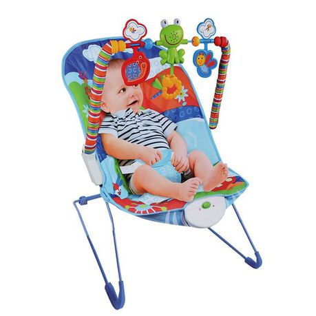 -3 point safety harness, can be adjusted appropriately to hold the baby secure gentle bounce with music and vibrations, soothe the baby creating a calming effect Soft padded toy bar with 4 attractive stimulating toys