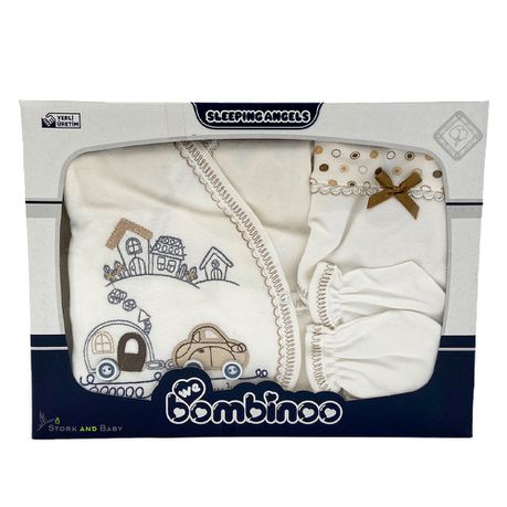 This coordinated design of 5 pieces set is elegant yet subtle. Great for new parents. Made from the softest cotton, great to take the baby out of the house and make as wonderful gifts, whether for a new birth or a baby shower.