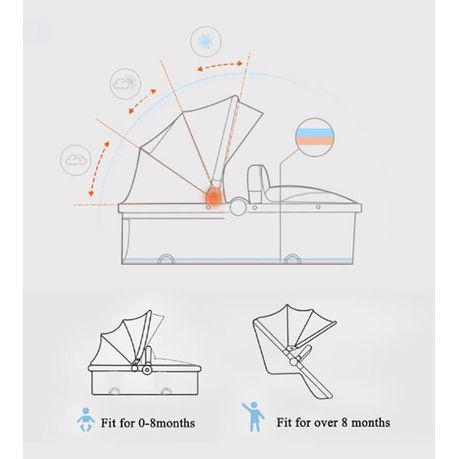 - Sun-proofing fabric, cradle, and armrest are all removable