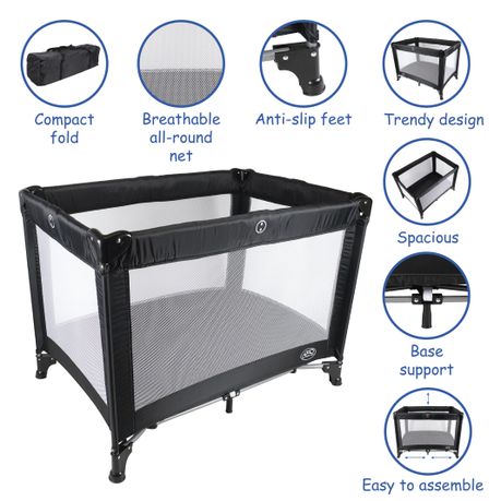 The playpen Open Box provides your child with a safe place to play, explore and relax. Thanks to the transparent mesh inserts, you can always have an eye on your little one.