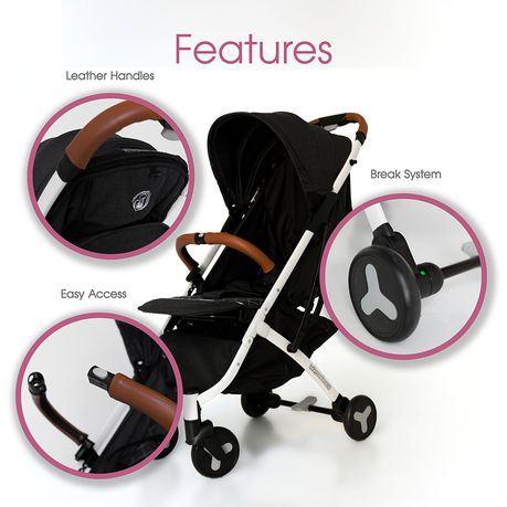 One of the great features of the BabyWombWorld Compact Stroller is the front handlebar. It is styled with leatherette and with the press of a button you can now get your little one in and out of the stroller in no time!